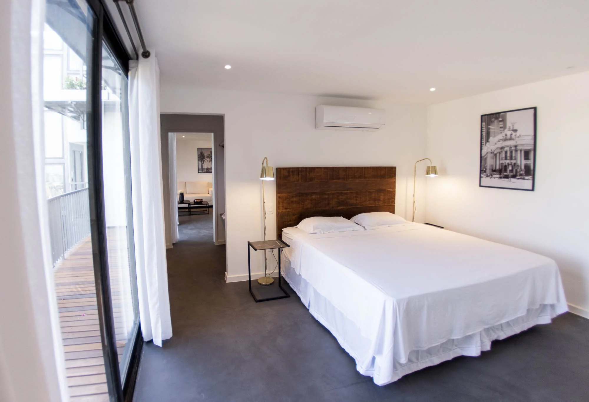 Com aproximadamente 37 metros quadrados a suíte Itanhangá possui, cama de casal, estação de trabalho, ar condicionado, tv e frigobar.